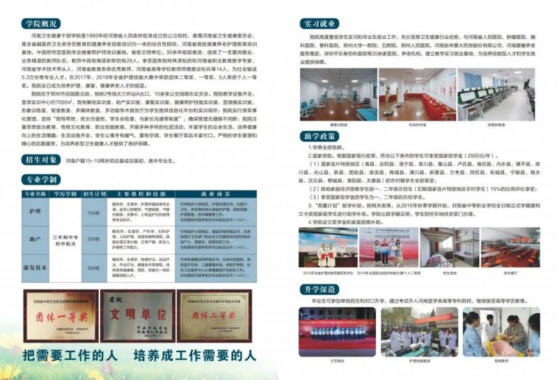 河南卫生健康干部学院始终以学生未来发展为导向,构建了完善的 “就业 加升学” 保障体系。在就业方面,凭借与众多医疗机构的合作资源,为卫生健康行业输送了大量实用型人才,考虑到学生的实际需求,河南卫生健康干部学院建立了覆盖广泛的助学保障机制。学院实行全免学费政策,仅收取学杂费,极大减轻了学生家庭经济负担;对于农村户籍学生,发放国家助学金。